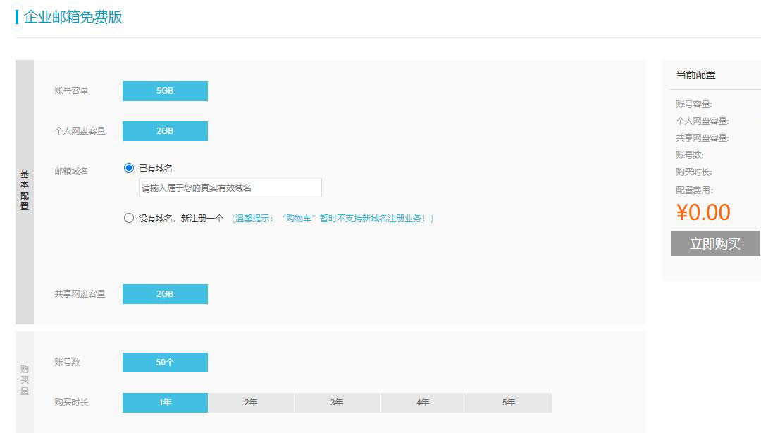 1、打开阿里云邮箱免费版注册页面:https://www.ali-exmail.cn/free/。