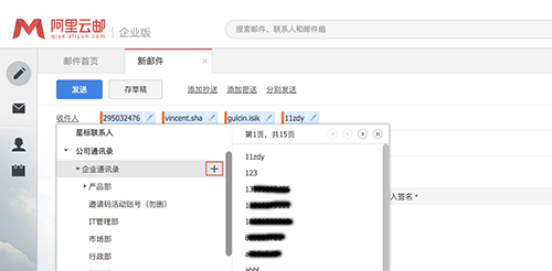 若需要对联系组所有联系人群发邮件,可单击联系组名称后方的 +号 按钮,添加本组全部联系人。